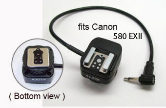 Cat# PW-MHSF1-580EXII Hot Shoe Female ( ETTL ) / Hot Shoe Male ( ETTL ) to Pocketwizard ( miniphone, 3.5MM ) Retains full ETTL with on camera Canon-580EXII Speedlights